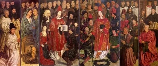 ►贡萨尔维斯《圣文森特群像》(c.1455),现藏里斯本葡萄牙国家古代艺术博物馆