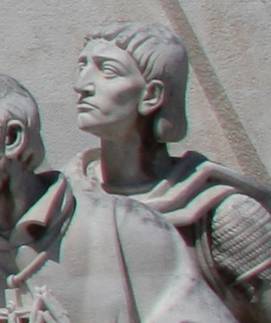 上图是纪念碑西侧的雕刻群像。屹立船头的就是恩里克王子,他是葡王若望一世之子、葡萄牙亲王、维塞乌公爵(Duke of Viseu)、地理大发现的主要推动者。以下从右到左依次是: