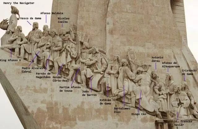 地理大发现纪念碑上的群像资料主要参阅https://en.wikipedia.org/wiki/Padrão_dos_Descobrimentos.