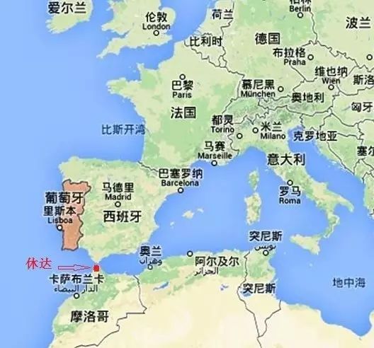 ►西南欧与葡萄牙地图 图片来源:百度地图(红色标示为本文作者所加)