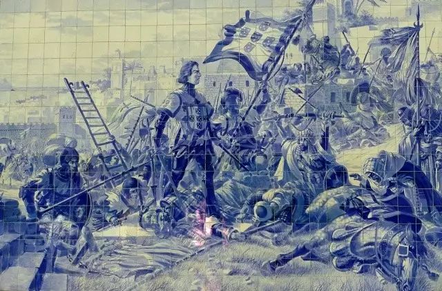 ►瓷砖镶嵌画《恩里克王子率军攻克休达》(1903),现在波尔图圣本笃火车站内