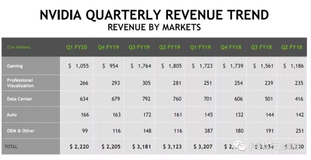 Stifel分析师凯文-卡西迪(Kevin Cassidy)周一在一份报告中写道,英伟达可能在本季度清空了游戏图形处理部门的渠道库存。卡西迪在报告中写道,“由于今年年初的挑战和竞争加剧对价格的压力”,英伟达的游戏业务收入在整个2020财年将下降14%。