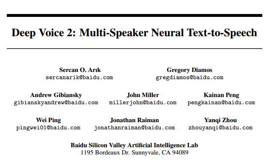今年 2 月份,百度提出了一种完全由深度神经网络构建的高质量文本转语音(TTS)系统 Deep Voice,参见机器之心报道《百度提出 Deep Voice:实时的神经语音合成系统》。近日,百度对这一系统进行了更新,提出了 Deep Voice 2,其可以使用单个模型生成不同的声音。百度在其研究博客上对这一研究进行了简单的介绍,机器之心对该博客文章和论文部分内容进行了编译介绍。有关文本转语音的更多研究,可扩展阅读机器之心文章《语音合成到了跳变点?深度神经网络变革 TTS 最新研究汇总》。