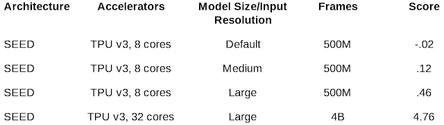 这篇论文中提供了更多详细信息,包括我们在 Arcade Learning Environment 中取得的成绩。我们认为,SEED RL 及其实验结果表明,通过利用加速器,强化学习已再一次赶超其他深度学习领域。