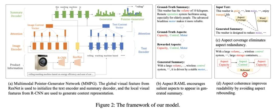 商品摘要任务的挑战性在于:一方面,商品给顾客的第一印象来自该商品的外观,这对顾客的购买决策有着至关重要的影响。因此,商品摘要系统必须能够充分挖掘商品视觉信息,反映商品的外观特色。另一方面,不同的产品有不同的卖点。例如,紧凑型冰箱的优点是节省空间,而环保型冰箱的优点是节能。因此,商品摘要应该反映商品最独特的方面,从而最大限度地促成消费者的购买。
