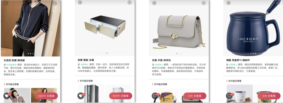 自 2019 年 2 月底,在【发现好物】的频道内实践智能写作功能,它帮助了京东零售生成多种风格文案,包括属性类描述、体验类描述、官方单品描述、搭配商品描述、社交体等,涵盖京东 2700 余个三级类目。文案人工审核率超过 99%,曝光点击率高出达人写作 40%,累计引单金额超过一亿。