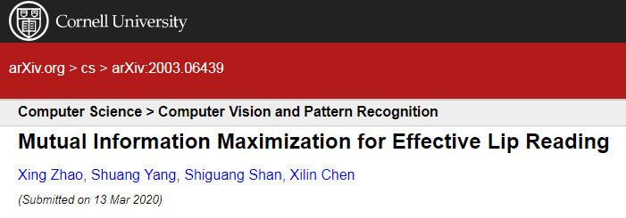 当地时间 2020 年 3 月 13 日,相关论文 Mutual Information Maximization for Effective Lip Reading(有效唇读的互信息最大化)发表于预印本网站 arXiv。