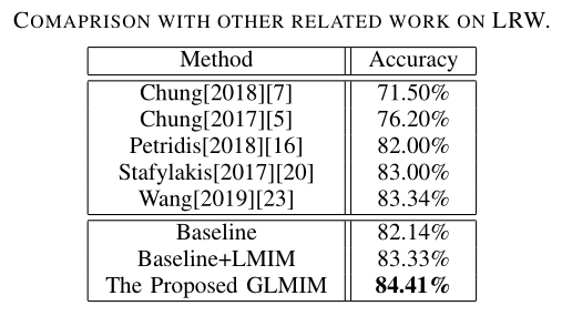 经评估,研究团队发现 GMIM 可将精度提高到 84.41%,这主要得益于它对不同帧关注不同的特性。与其他除视觉信息外务额外输入的唇读方法相比,研究团队在 LRW 数据集上得到了迄今为止最佳的性能(如下图)。