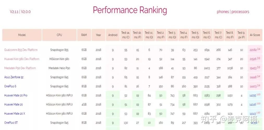 但从AIMark平台上的跑分成绩来看,高通855平台获得2.2万分,和麒麟980的得分2.15万分相差不大,这又是怎么一回事呢?