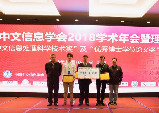 2018年11月10-11日,中国中文信息学会2018学术年会暨理事会上,中科院自动化所模式识别国家重点实验室自然语言处理研究组喜获“钱伟长中文信息处理科学技术奖”一等奖、“汉王青年创新奖”、“拓尔思优秀博士学位论文奖”等多项大奖。