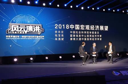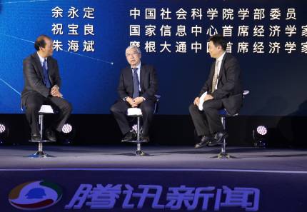 2017腾讯风云演讲暨原子智库年会上,中国社会科学院学部委员余永定 、国家信息中心首席经济学家祝宝良,摩根大通中国首席经济学家朱海斌进行了中国宏观经济的展望。