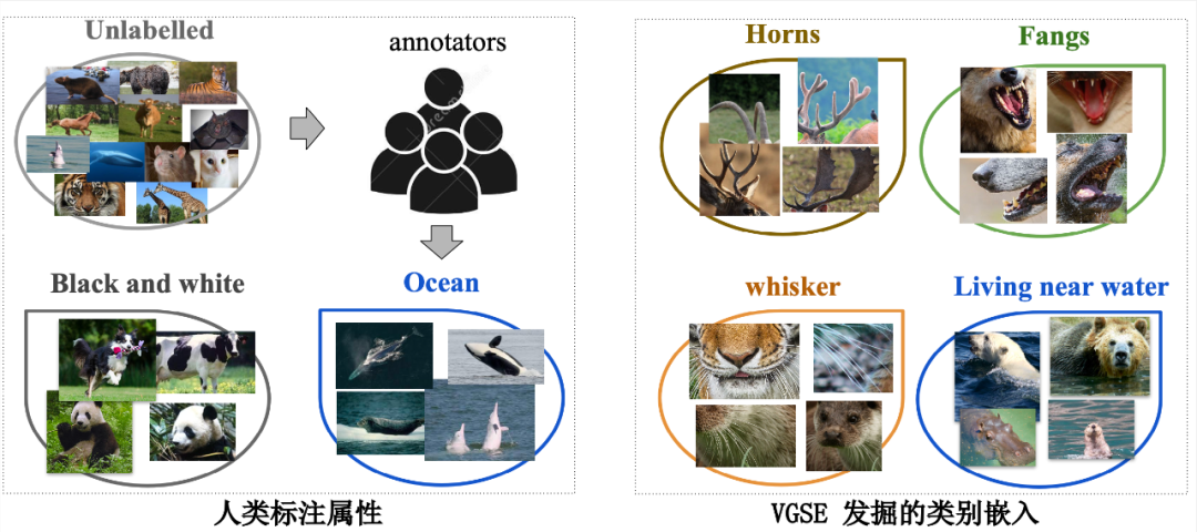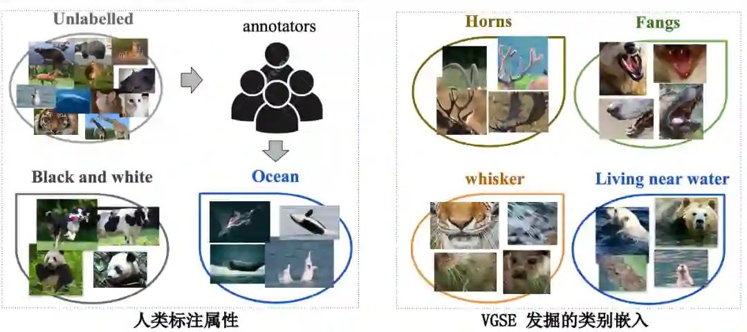 然而属性标注过程需要大量人力投入和专家知识,限制了零样本学习在新数据集上的拓展。此外,受限于人类的认知局限,其标注的属性无法遍历视觉空间,因而图像中一些具有辨别性的特征无法被属性捕捉,导致零样本学习效果不佳。