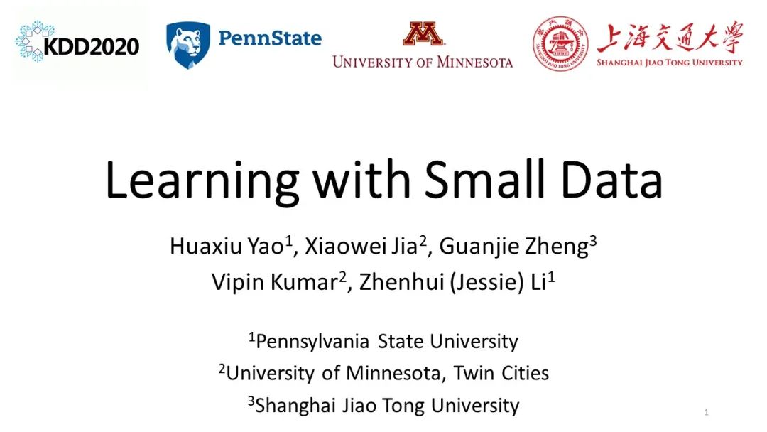 ACM SIGKDD(ACM SIGKDD Conference on Knowledge Discovery and Data Mining,国际数据挖掘与知识发现大会,简称 KDD)是数据挖掘领域国际顶级学术会议,今年的KDD大会将于8月23日至27日在线上召开。宾夕法尼亚州立大学ZhenhuiLi, Huaxiu Yao, Fenglong Ma等做了关于小数据学习《Learning with Small Data》教程,116页ppt涵盖迁移学习与元学习等最新课题,是非常好的学习材料!