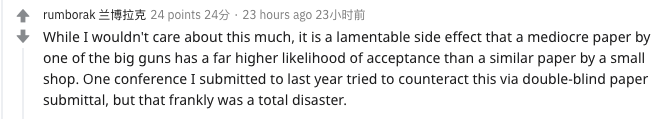 虽然现在大多数顶会的论文审核都是双盲的,但是审稿人很容易判断作者的背景情况,比如说论文中的模型使用了几千个TPU,那来自大厂无疑了。