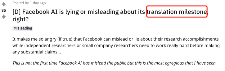 昨天,Facebook宣布其最新的神经机器翻译模型不依赖英语就能实现100种语言的互译,并称之为「里程碑式」进展。今天就有网友发帖质疑,「里程碑」的说法有点夸大宣传,「不依赖英语」也不够准确,对前辈谷歌在该领域的研究更是只字未提。