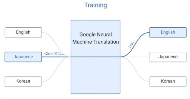 谷歌的这一算法是零样本学习的,假设我们用日语、英语和韩语的例子来实现一个多语言翻译系统,与单个 GNMT 系统的大小相同,它通过共享参数来在这几个不同的语言对之间进行翻译。这种共享使系统能够将「翻译经验」从一种语言对转移到另一种语言对。