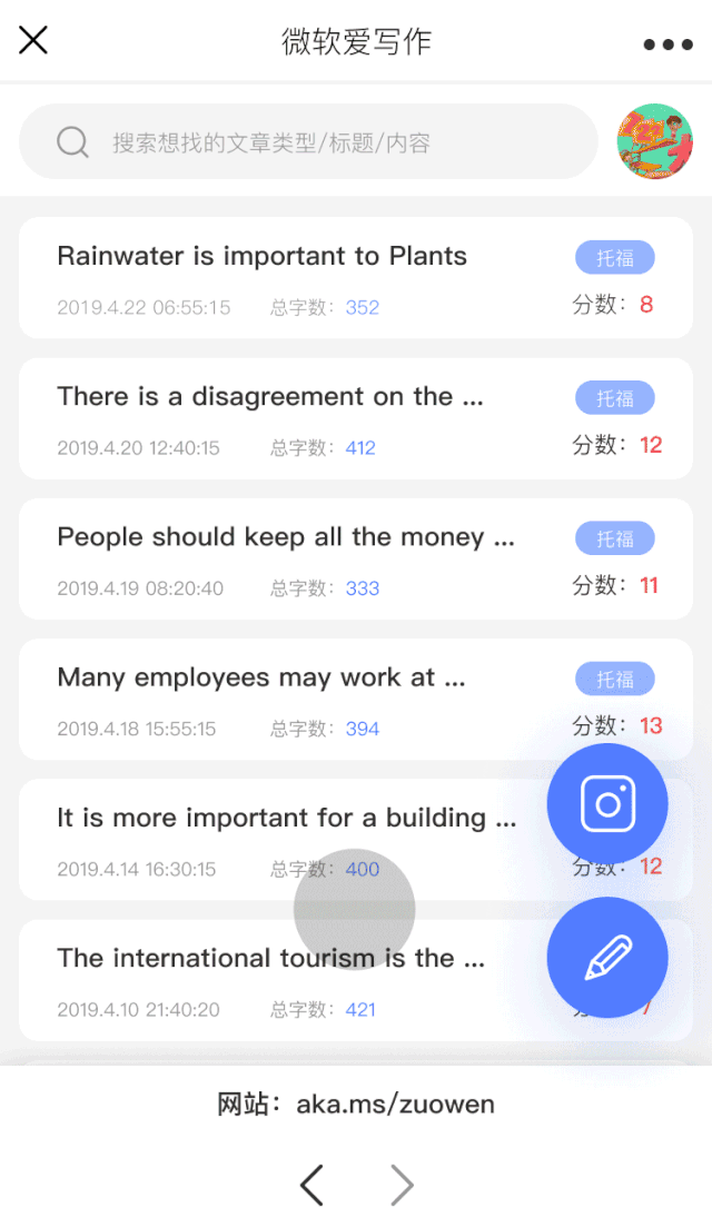 关注“爱写作”公众号(微信号:aimwriting)或者扫描文章下方二维码,添加微软“爱写作”公众号。“爱写作”网页版也同步升级各项功能。