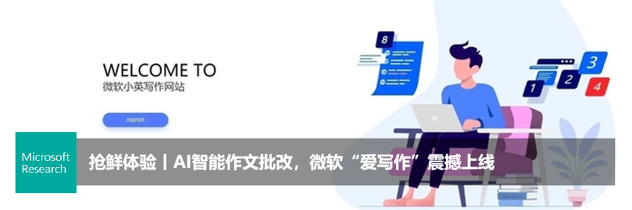 近日,微软“爱写作”公众号正式上线,基于微软亚洲研究院在自然语言处理、OCR(光学字符识别)等领域的多项最新研究成果,以及微软小英多年的技术积累,“爱写作”打造了四大亮点:语法检查、词语替换、分类作文打分和手写图片识别,不仅是学生学习的好帮手,也是老师的“智能助教”。它可根据不同年级的作文标准,从语法到用词、文章结构,全面且便捷地帮助小初高学生、成人培训学习者,以及四六级、雅思、托福、考研的备考者提升英文写作水平。