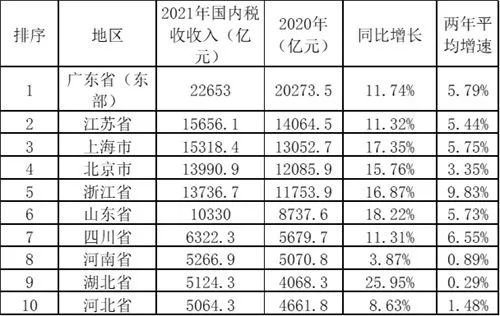 【税收10强省份出炉:广东拔头筹,山东首次突破万亿元】