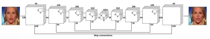 之后,我们又对FaceForensics中的368,135个训练图像进行微调,并把经过预训练的自动编码器网络放在上面训练。我们输入一张假脸,把监督学习的loss设置成1,启用skip connection,以便网络能输出更清晰的结果。