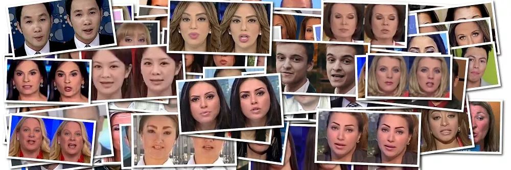 数据搜集:所有数据都来自YouTube。我们选择的是分辨率大于480p的视频,它们在YouTube8m上已用“face”“newscaster”或“newsprogram”进行了标记。通过使用Viola-Jones人脸检测器,我们从图片中提取了包含超过300个连续帧的人脸视频序列,之后再剪辑成果并手动放映,从中筛选出优质的、无遮挡的视频。