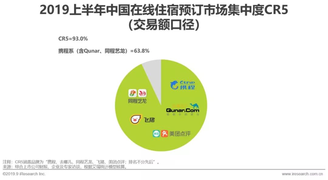 •交易额口径下,中国在线住宿预订市场CR5为93.0%