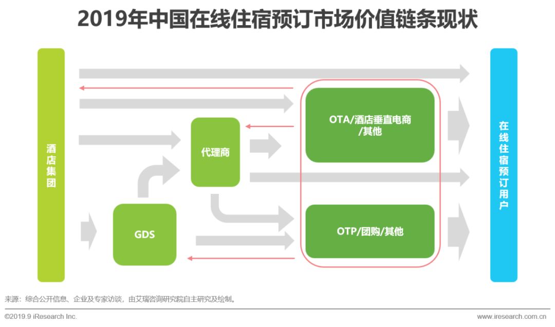 产业链条清晰,在线触达用户渠道集中在OTA/OTP/酒店直销