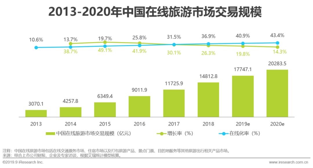 •2019年中国在线住宿预订市场交易规模预计超过2700亿元