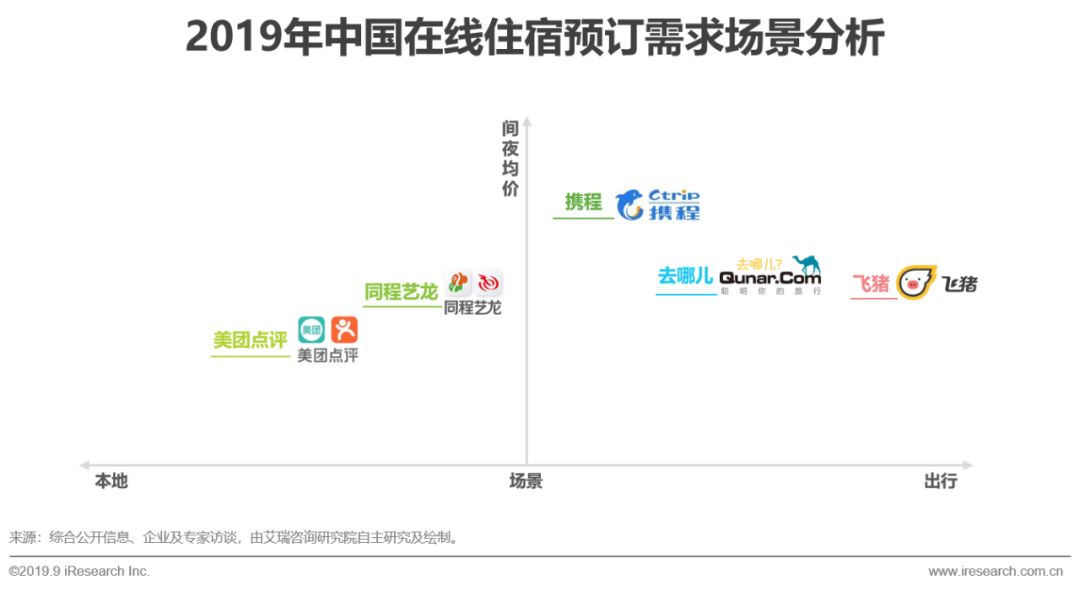 目前,中国在线住宿预订需求场景主要分为两类,一类为本地化场景,如突发性住宿需求等;一类为出行类场景,如度假、商旅等住宿需求。另外从间夜均价角度来看,市场各企业也存在一定差别。