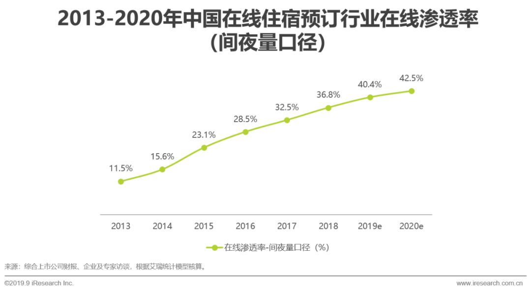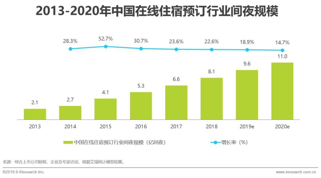 •2019年中国在线住宿预订市场间夜规模预计达9.6亿间夜
