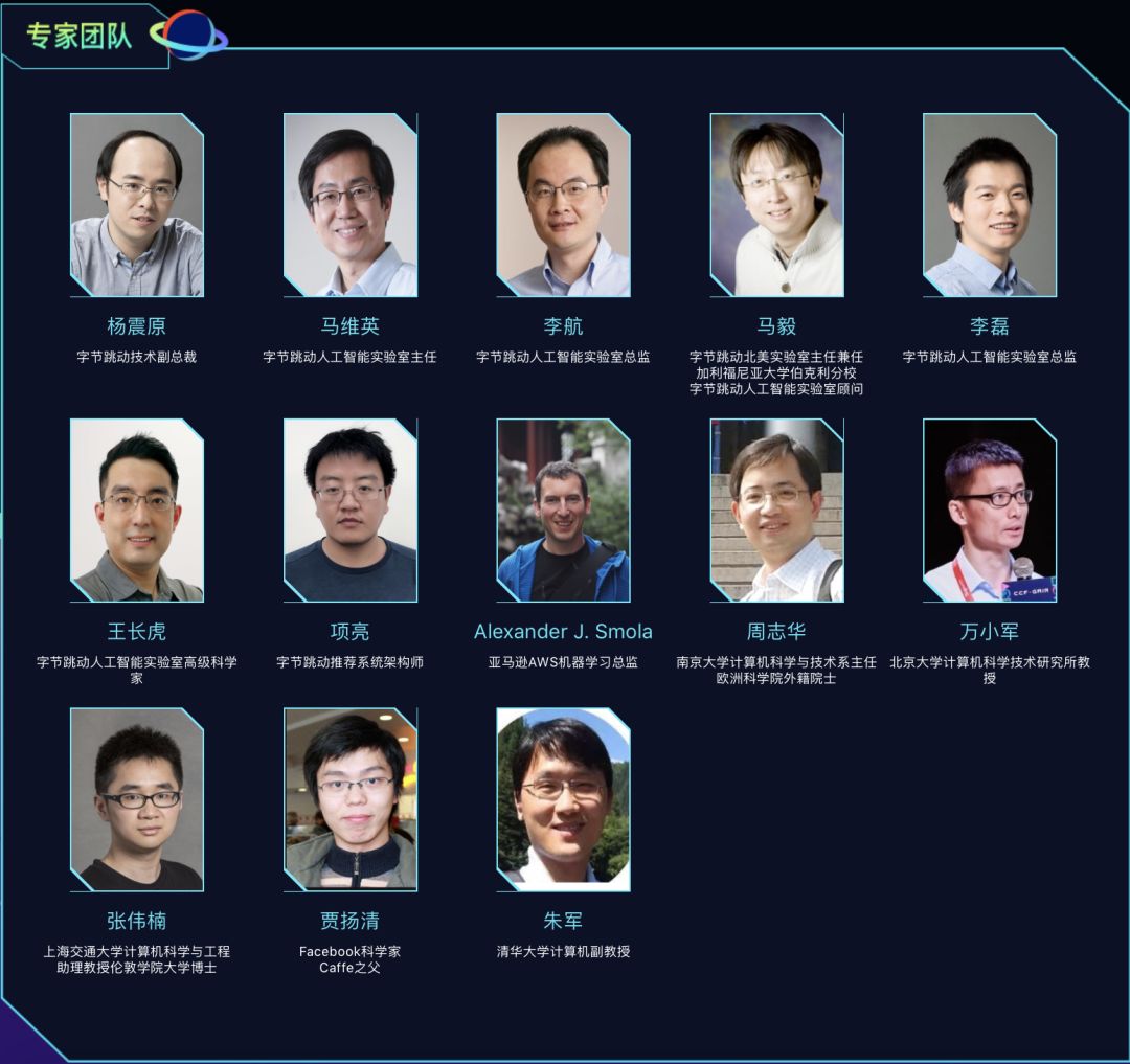 除了来自字节跳动的几位技术大牛,该课程还邀请到了周志华、马毅、朱军、Alexander J. Smola、贾扬清等大牛亲自授课,带来 2 天、20 小时的理论学习。每位技术大牛都将带来一小时前沿技术 keynote、两小时技术干货 lecture,研究领域涵盖机器学习和系统、深度学习、机器学习算法、计算机视觉、自然语言处理等多个角度。