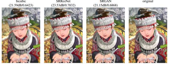图12.生成对抗网络做超分辨率的例子,最右边是原始图像