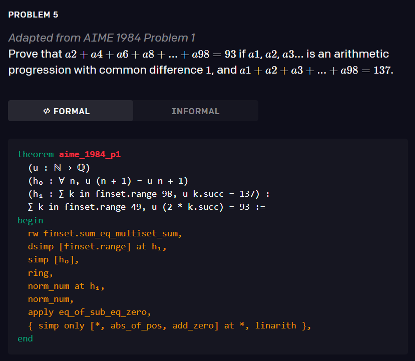 由于 Lean 剑指金牌,研究人员一直在对其进行不停的打磨,其中也包括被微软收购了的 OpenAI。刚刚,OpenAI 发文表示,他们已经为 Lean 创建了一个神经定理证明器,用于解决各种具有挑战性的高中奥林匹克问题,包括两个改编自 IMO 的问题和来自 AMC12、AIME 竞赛的若干问题。
