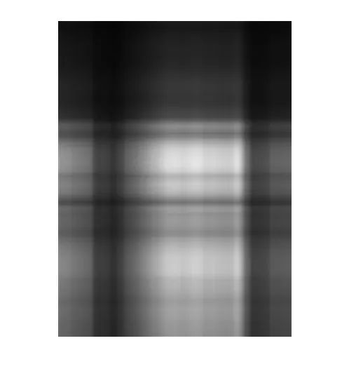隐约可以辨别这是短发伽椰子的脸……但还是很模糊,毕竟我们只取了5个奇异值而已。下面我们取20个奇异值试试,也就是(1)式等式右边取前20项构成