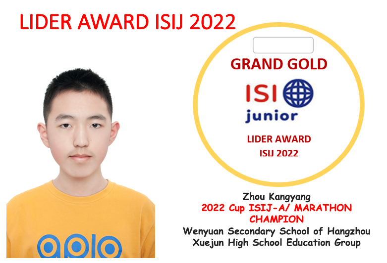 来自杭州学军中学教育集团文渊中学的周康阳选手获得ISIJ 2022年度冠军。