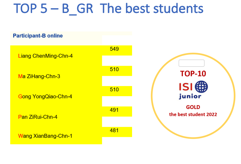 ISIJ 2022成绩如下: