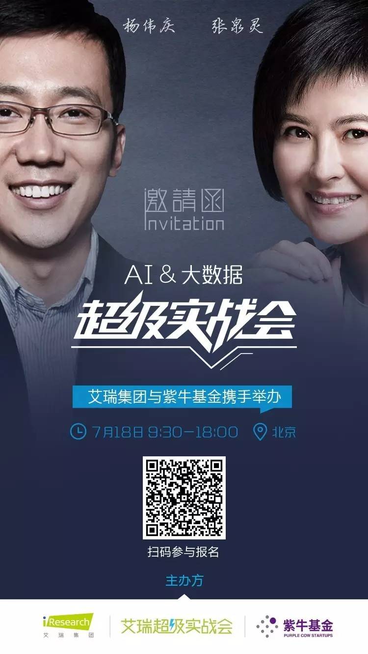艾瑞超级实战会之人工智能和大数据专场将于7月18日携著名投资人张泉灵共同推出,请点击“阅读原文”或扫描下方二维码报名,让我们共建无边界组织,共同完成认知量化升级并解决实际认知痛点!