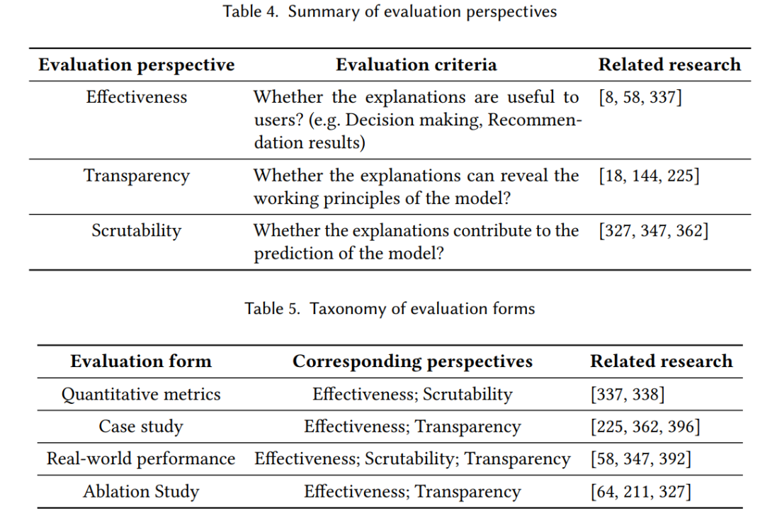 随后,本文介绍了可解释性的问题,它希望推荐系统在预测背后的工作机制能够被不同的利益相关者(如系统的开发者和终端用户)所理解。推荐系统中的可解释性被视为激励用户与在线服务互动的有效方式,在互动过程中增加用户的信任,并帮助算法开发者开发和调试系统,在文中给出了详细的介绍。