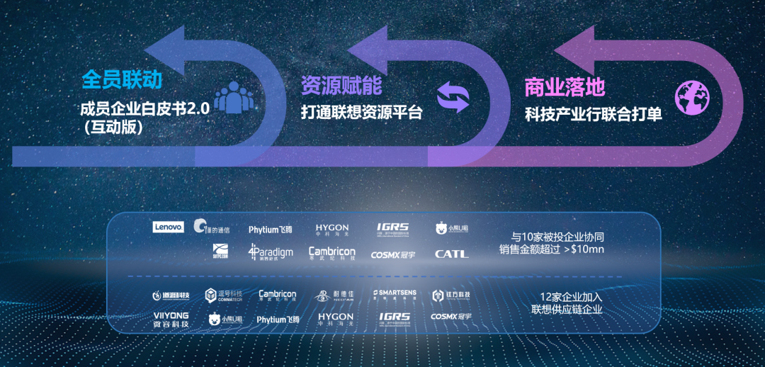 其实,经过多年沉淀,联想创投的被投公司、孵化企业和联想集团三者之间逐渐产生生态联动,构建起了网状竞争优势,真正实现了双向赋能。比如,通过联想创投周、成员企业白皮书发布、科技产业行、CEO Summit等活动,已经促成半数被投企业与集团合作,他们一起为各行业提供智能化的解决方案。