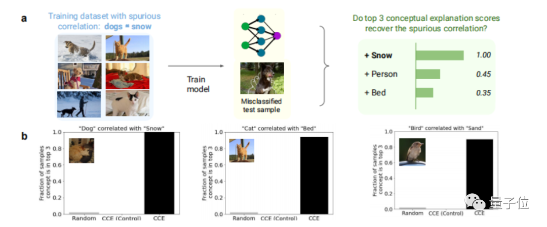 测试发现,在大多数情况下,该模型在超过90%的错误分类的测试样本中识别出伪相关。