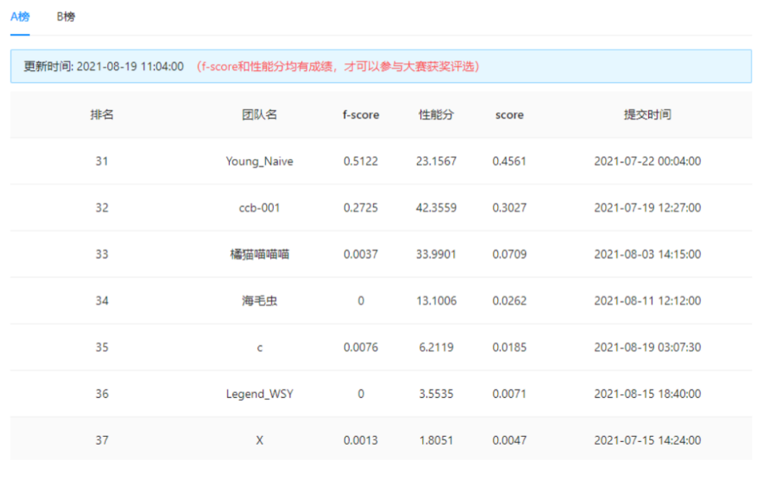 打榜排行、项目或竞赛A/B榜成绩均有效