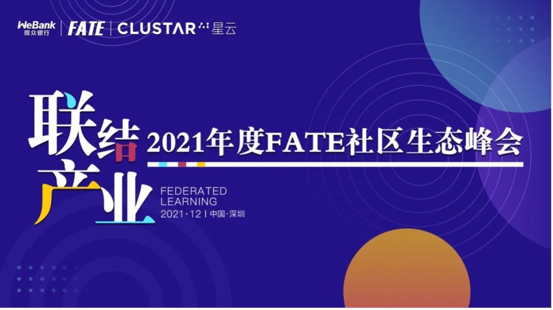 12月18日,中国深圳,FATE社区2021年度生态峰会即将召开。这次峰会由联邦学习 FATE 开源社区联合星云 Clustar 共同举办,将集中展示近年来国内联邦学习的研究和应用成果,涵盖金融、医疗、通信等重点行业。