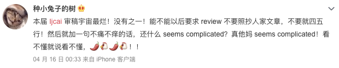 有知乎用户吐槽:“审稿人审到自己的 paper。会议主席不组织复查。听到各种审稿内幕,头大。”