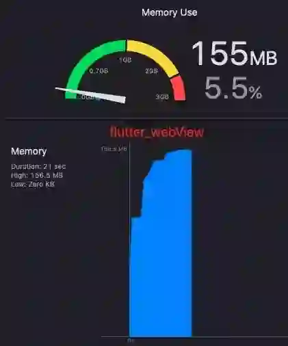 从图上可以看出,WKWebView 在内存方面有很大的优势啊,UIWebView 的内存是真的伤啊,然后 debug 看了一下 flutter_webView,他使用的就是原生的 webView。