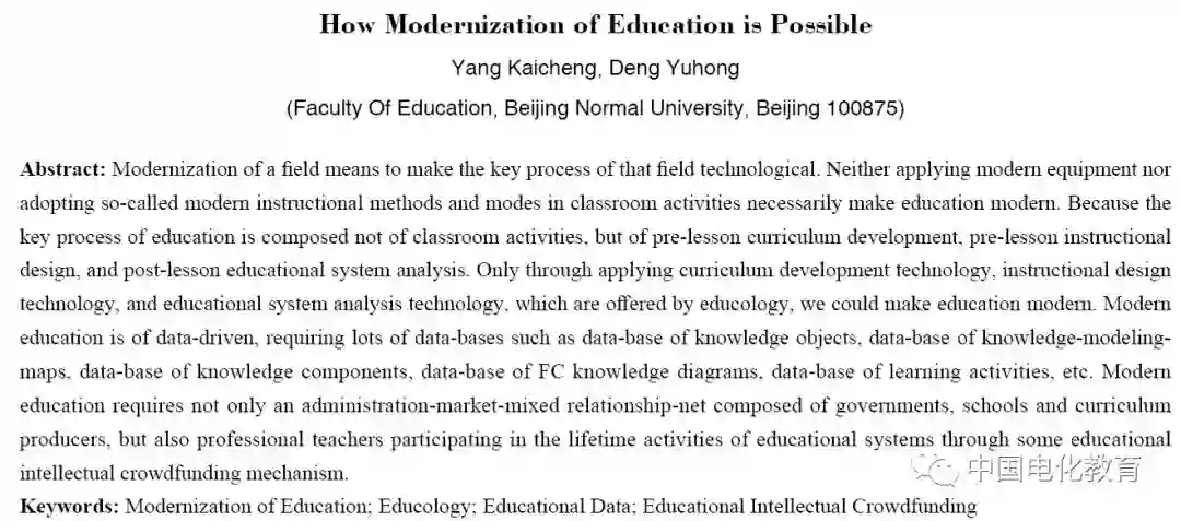 关键词:教育现代化;新教育学;教育数据;教育众筹