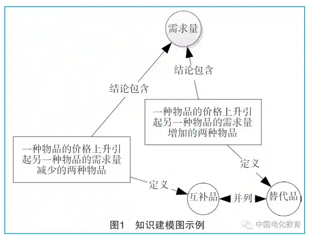 知识是教育传递的核心内容。在很大程度上说,教育就是传递知识并在此基础上促使学生生成运用知识的能力。知识本身是一种网络,因此知识网络图通常被作为教育系统设计的客观依据之一,也是教育系统设计的基础数据之一。只不过,我们不宜采用语义网络图来表征教育系统设计所需要的知识网络图。由于语义的丰富性以及语义表达的含混性,针对同样一段知识语料,不同的人会产生正确却互不相同的语义网络图,由此会形成语义网络图数据上的不一致。我们所建构的语义网络图规模越大、参与的人越多,这种不一致风险就会越大,我们很难得到统一的、内在一致的语义网络图库。包含数据不一致的知识语义网络图是难以大规模应用的。而且教育系统设计本身并不需要知识语义图,它需要的是知识之间的隶属关系图。知识建模图便是一种知识隶属关系图,具有令人满意的内在一致性[13]。相同学习目标的不同教育系统,它们的媒体形式、言语描述、学习方式可以不同,但是它们所包含的知识建模图可以相同。知识建模图不但是教育系统设计的数据基础,也是对知识对象的知识属性进行赋值的值域。