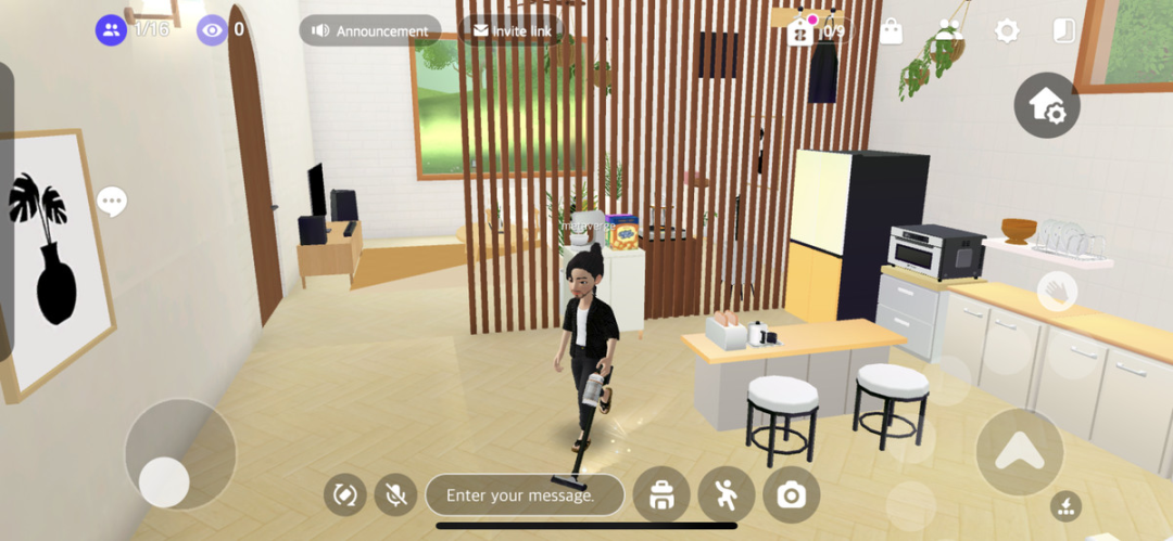 玩家可以从房子的前院开始探索,与其他人互动,进入不同的房间参观。