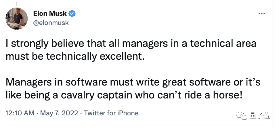 毕竟早在5月份,他就曾指出:软件管理者必须写出很棒的软件,否则就像一个不会骑马的骑兵队长!