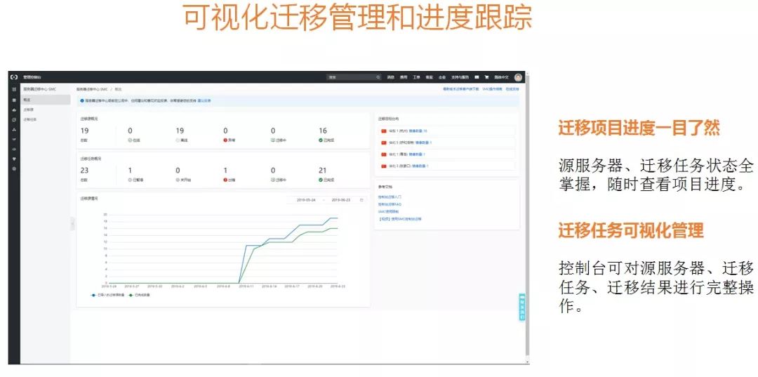 SMC提供的可视化控制台,不仅可以让企业和项目负责人对迁移进度一目了然,还可以对迁移任务进行批量化管理。对有运维自动化能力的用户,也可以通过OpenAPI的方式对迁移进行管理和查询。