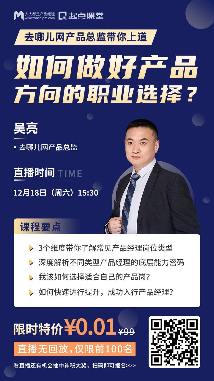 本次特别邀请了去哪儿网产品总监@吴亮老师直播授课。